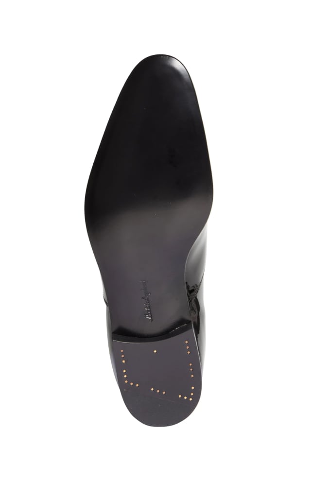 The label’s signature intrecciato weave brings texture, along with a stretchy fit, to a calfskin-leather slingback grounded by an articulated rubber sole.