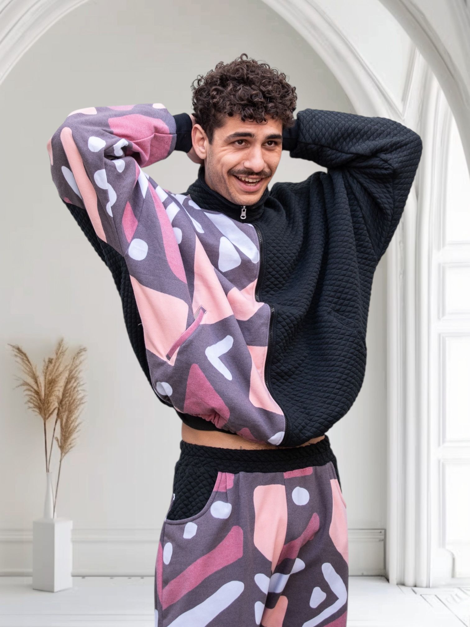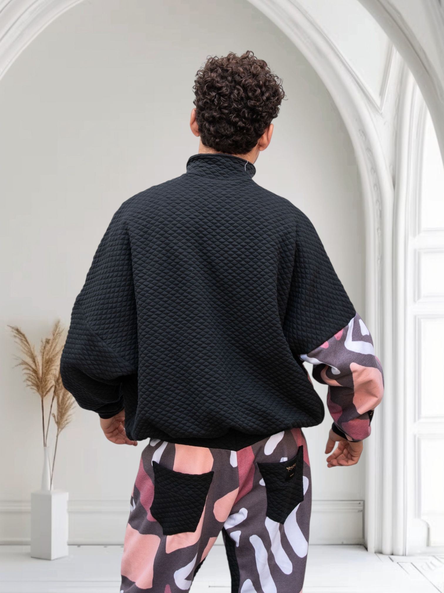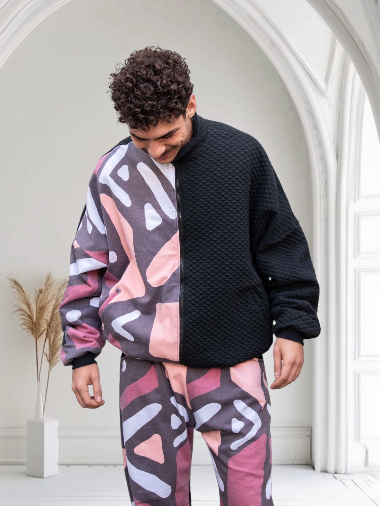 El diseño reversible permite dos energías en una sola prenda: un lado más sobrio y urbano, y otro más expresivo y artístico. El acolchado aporta estructura, abrigo ligero y textura, convirtiéndola en una pieza funcional para el día a día creativo.