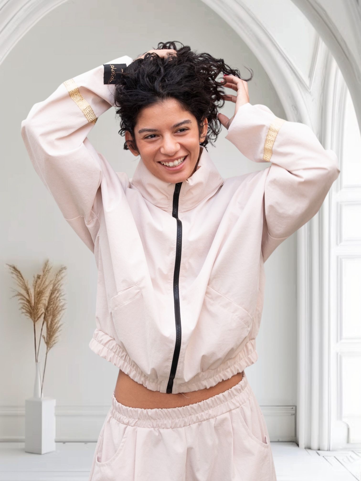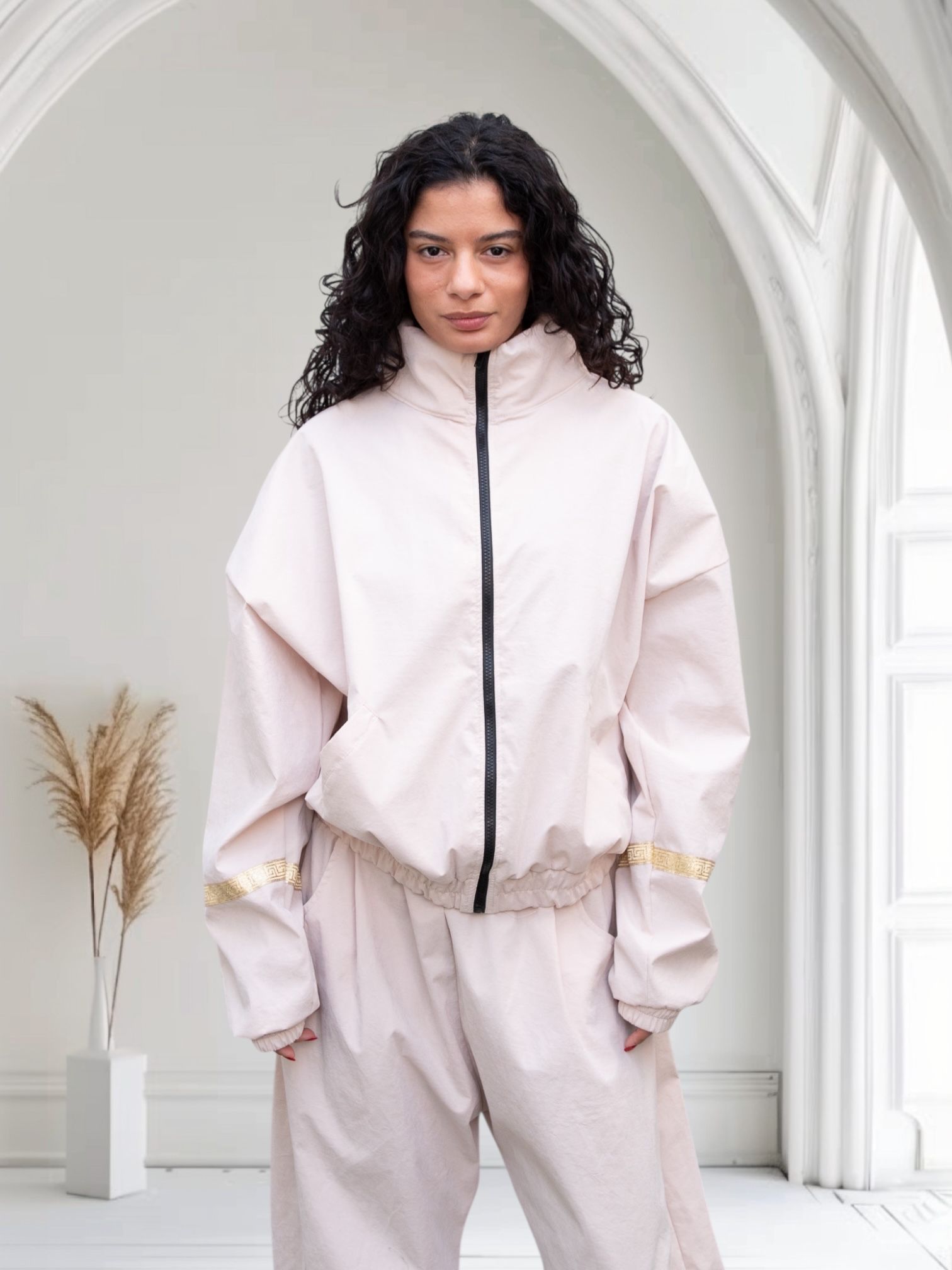 La Chaqueta ORIGEN representa el inicio: lo esencial, lo puro, lo que permanece cuando todo lo demás se suelta. Un diseño limpio y consciente que conecta con el cuerpo desde la calma y el movimiento natural.Su corte relajado y estructura ligera envuelven sin rigidez, permitiendo libertad y comodidad en el día a día. La cintura y los puños elásticos aportan ajuste suave, mientras que la cremallera frontal y los bolsillos funcionales refuerzan su carácter práctico y urbano.El tono Beige Nude, orgánico y atemporal, dialoga con la piel y convierte la prenda en una base versátil, fácil de combinar y pensada para acompañarte en cualquier momento.